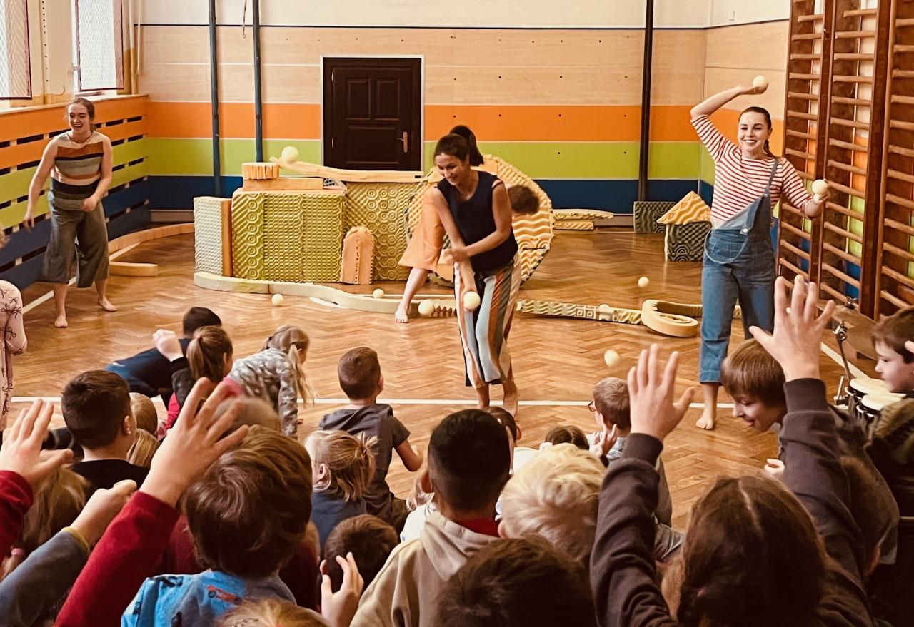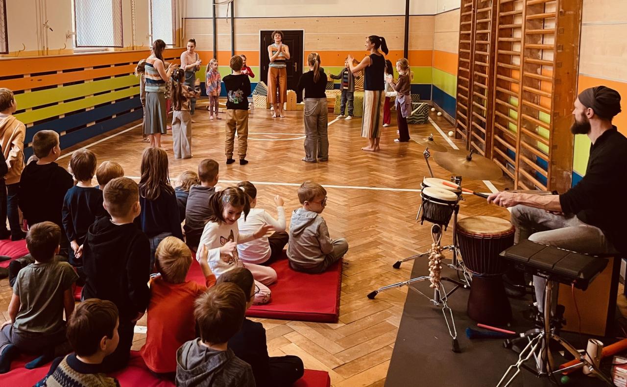 V rámci školního programu k nám do školy před Vánoci přijeli umělci z Tanec Praha s představením Čas dětství. Interaktivní taneční představení nás vtáhlo do světa zázraků, pohádek a splněných přání, ve kterém se i dospělí mohou cítit jako děti. Zaujala nás jednoduchá, ale promyšlená scéna a hudba, která celý zážitek skvěle doplňovala. Na závěr představení byl pro děti připraven krátký interaktivní workshop, kde si mohly pohrát s předměty ze scénografie a tvořivě se zapojit.